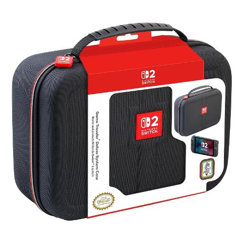 La custodia Deluxe per console è una custodia rigida e resistente progettata per proteggere le console Nintendo (Nintendo Switch 2, Nintendo Switch OLED, Nintendo Switch e Nintendo Switch Lite) e i relativi accessori. È dotata di scomparti separati che custodiscono saldamente la console Nintendo Switch 2, il modello Nintendo Switch OLED o la base di ricarica della console Nintendo Switch. La custodia può contenere anche un Pro Controller o un'impugnatura per Joy-Con, due Joy-Con extra, un alimentatore con cavo di alimentazione, un cavo HDMI e laccetti per Joy-Con.
