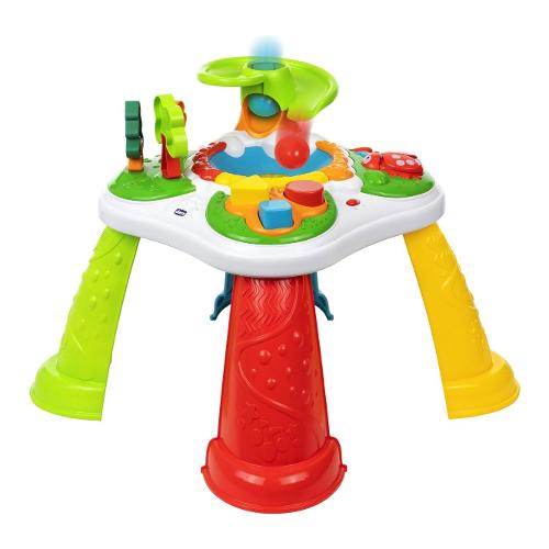 Tavolo elettronico pieno di attività, manuali ed elettroniche, per stimolare le abilità motorie fini e logiche del bambino.