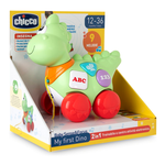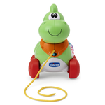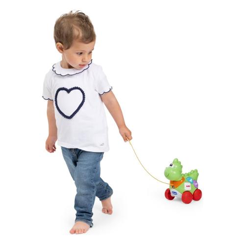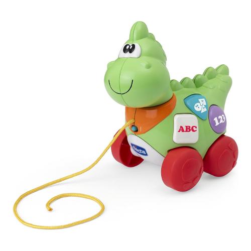 Un divertente dinosauro progettato per incoraggiare il bambino a camminare. Tirando il cordino, il dinosauro muove la testa a sinistra e a destra!