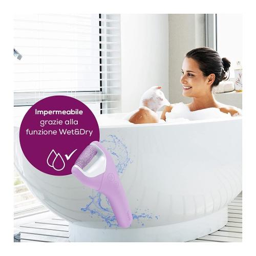 Con l'MP 59 puoi liberare i tuoi piedi in modo efficace e senza sforzo da fastidiosi calli, duroni e pelle ruvida. Il levigatore per talloni è dotato di una potente batteria ricaricabile agli ioni di litio per una durata particolarmente prolungata ed efficace. Inoltre, il dispositivo è impermeabile e quindi adatto all'uso a secco e a umido. In dotazione 2 rulli levigatori asimmetrici (a grana grossa e a grana fine) per un'applicazione puntuale o su grandi aree del corpo