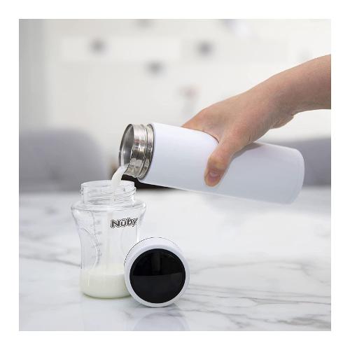 Cerchi una soluzione pratica e veloce per raffreddare l’acqua dopo l’ebollizione per preparare il latte in formula al tuo bambino? Per preparare un alimento sicuro per i neonati, le linee guida dell’Oms raccomandano di far bollire l’acqua per la preparazione del latte in polvere. Da oggi, è possibile risparmiare tempo e portare l’acqua alla temperatura perfetta in modo pratico e senza sforzi, con l’innovativo sistema refrigerante portatile RapidCool™ di Nûby. Ideale anche in viaggio, questo sistema ti aiuta nella preparazione del latte artificiale, permettendoti di raffreddarlo da 100 C° alla temperatura perfetta in due minuti*. Lo schermo digitale nel coperchio avvisa comodamente quando la temperatura ideale è raggiunta. In questo modo il biberon è pronto per essere preparato in pochissimo tempo, dovunque tu sia. Una vera rivoluzione che ti renderà la vita più semplice! *Il tempo può variare tra i 2 e i 5 minuti, a seconda del volume del cibo.