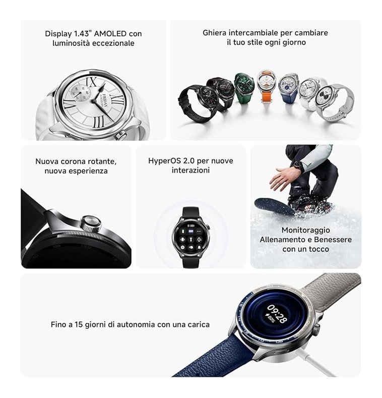 Elegante telaio in lega di alluminio con finitura ad alta lucentezza simile all'acciaio inossidabile. La corona girevole migliorata offre un'esperienza tattile raffinata.