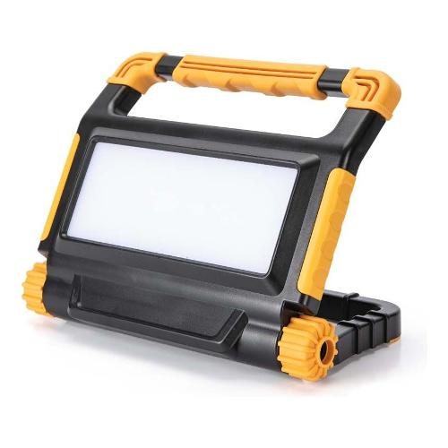 Faretto Led da 15 W portatile ricaricabile con alimentatore fornito di serie. Il faretto LED è completamente richiudibile su se stesso. Il telaio regolabile permette di variare l'inclinazione con la quale diffondere la luce proiettata.