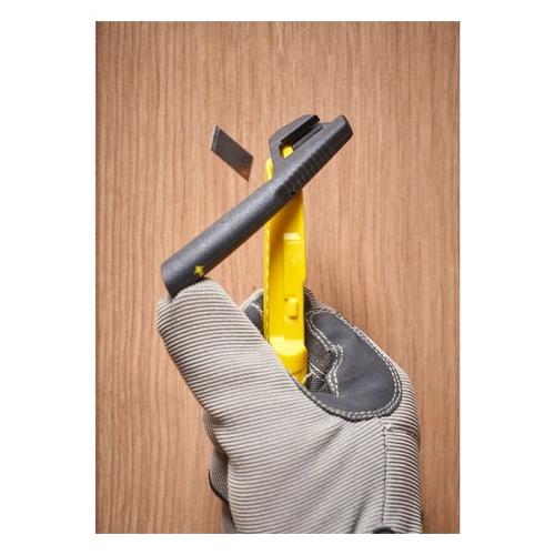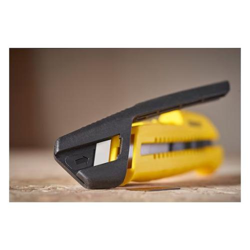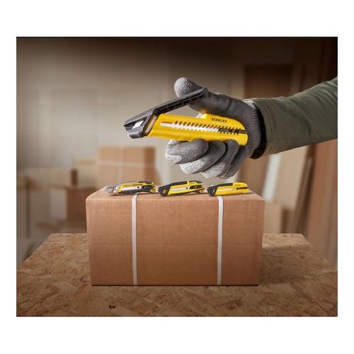 Cutter in materiale sintetico con sistema spezzalama integrato, veloce, semplice e sicuro. Il colore a contrasto permette di comprendere in maniera intuitiva il funzionamento del meccanismo. La linea tracciata sulla punta del cutter indica dove posizionare la lama per il taglio del segmento. Ergonomia dell'impugnatura ottimizzata che consente una presa sicura.