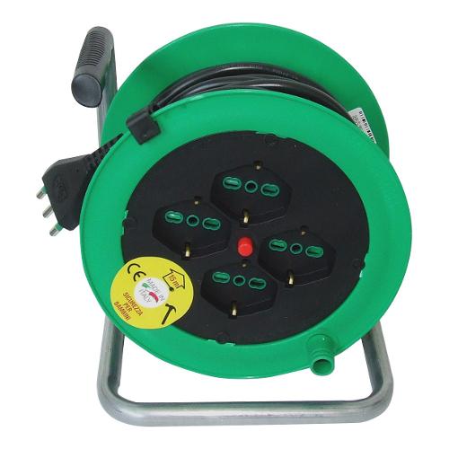 Avvolgicavo elettrico (25m; H05VV-F 3x1,5 mmq) 4P e disgiuntore termico ONDINO Verde e Nero 14611