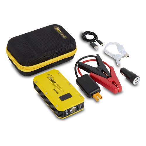 Fast 380 è un booster al litio da 37 Wh con 3 funzioni: Avviatore d’emergenza per moto, auto ecc. con batteria a 12V (corrente di spunto: 800 Amp, corrente di avviamento 380 Amp).
