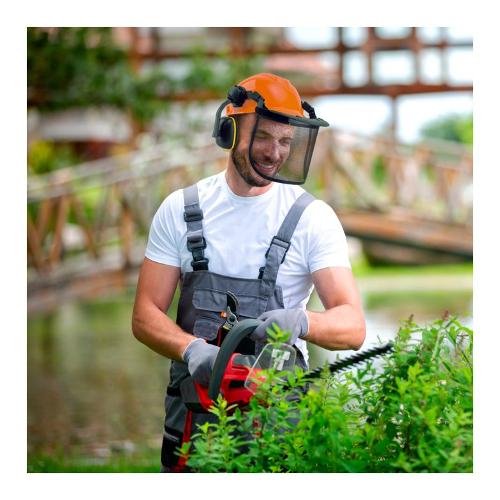 Casco protezione boscaiolo visiera e cuffie incorporate EN 166:2004 EU2016/425 (taglia unica ) Arancio 08838