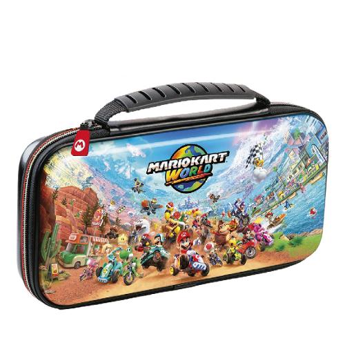 La custodia da viaggio Traveler Mario Kart World Deluxe è una resistente custodia rigida progettata per proteggere le console Nintendo Switch 2, Nintendo Switch OLED Model e Nintendo Switch.
