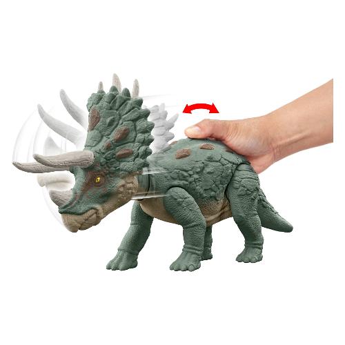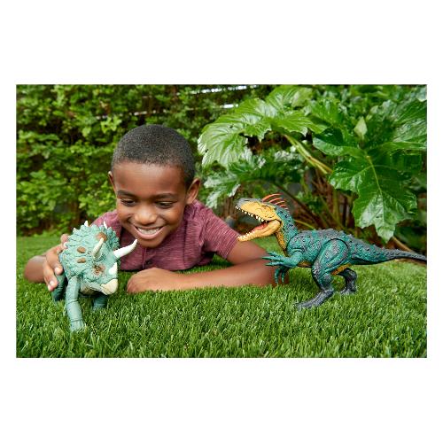 Ogni personaggio di jurassic world predatori giganti è pronto a sferrare furiosi attacchi da battaglia con una straordinaria mossa d'attacco attivata dalla rotella. Inoltre, ognuno è pronto per la battaglia e presenta funzionalità come gli aculei sul corpo che si attivano con il semplice tocco di un pulsante o una seconda fila di corna. Questi dinosauri di grandi dimensioni, lunghi circa 35,6 cm e alti circa 18 cm, presentano forme realistiche e una varietà di decorazioni specifiche per l'habitat. Scansiona il codice di tracciamento nascosto nell'app gratuita jurassic world play con un dispositivo smart compatibile (android o ios, non incluso) e sblocca le esperienze e i divertentissimi giochi in realtà aumentata!