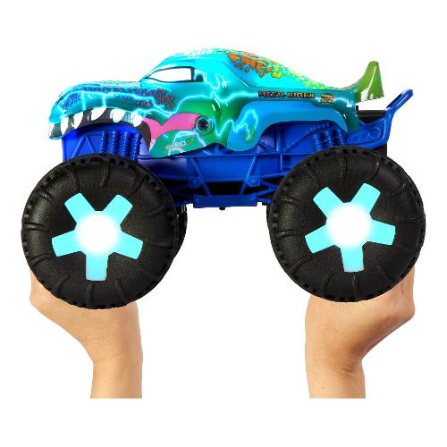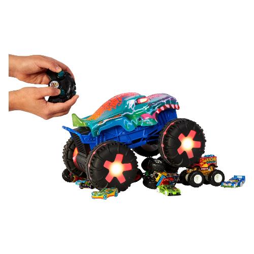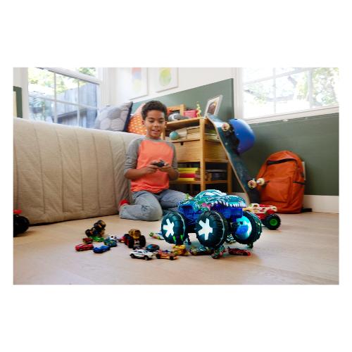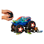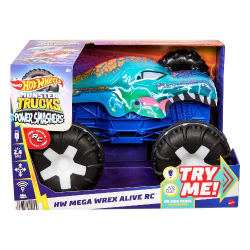 Il leggendario hot wheels monster trucks mega-wrex prende vita in scala 1:15, con luci e suoni interattivi e tre modalità di gioco! Nella modalità caccia, mega-wrex si accende e insegue la preda: ogni colpo attiva luci e suoni. Affronta gli sfidanti con un grande ruggito nella modalità scontro: più scontri effettua a più aumentano i rumori e la ferocia. Nella modalità guardia, mega-wrex si ricarica con una luce soffusa, pronto per essere svegliato in qualsiasi momento. Ogni interazione è accompagnata da luci e suoni che ispirano un gioco dinamico e una narrazione creativa.