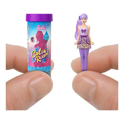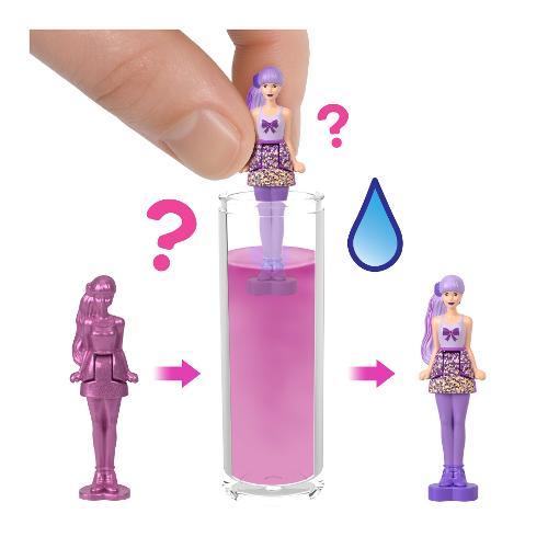 Entra nel mondo della bambola barbie con mini barbieland, un luogo in cui immaginare in grande e sognare con le versioni mini! Le bambole mini barbieland color reveal offrono una fantastica esperienza quando apri la confezione per scoprire una piccola sorpresa. Apri il piccolo tubo, estrai una mini bambola ricoperta da un rivestimento colorato, poi usa l'acqua come indicato per scoprire il look della bambola: è così facile! Quale bambola troverai? Le bambole da 3,8 cm sono snodate in vita e sono posizionate su una base a forma di cuore che si inserisce nei playset mini barbieland (in vendita separatamente). Puoi anche usare la confezione a forma di tubo per riporre la bambola. I fan dai 4 anni in su vorranno collezionare tutte queste adorabili bambole per costruire il loro mini mondo! Ognuna in vendita separatamente, secondo disponibilità. Colori e decorazioni possono variare.