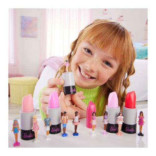 Entra nel mondo della bambola barbie con mini barbieland, un luogo in cui immaginare in grande e sognare con le versioni mini! Queste mini fashionistas rubano la scena e sono perfette per il gioco o l'esposizione una volta rivelate. Per scoprire quale bambola si trova all'interno del tubetto di rossetto, ruota il tubetto e scopri una barbie o un ken da 3,8 cm per una piccola sorpresa e un grande divertimento! Le bambole sono snodate in vita e sono posizionate su una base a forma di cuore che si inserisce nei playset mini barbieland (in vendita separatamente). I fan dai 4 anni in su vorranno collezionare tutte queste adorabili bambole per costruire il loro mini mondo! Ognuna in vendita separatamente, secondo disponibilità. Colori e decorazioni possono variare.