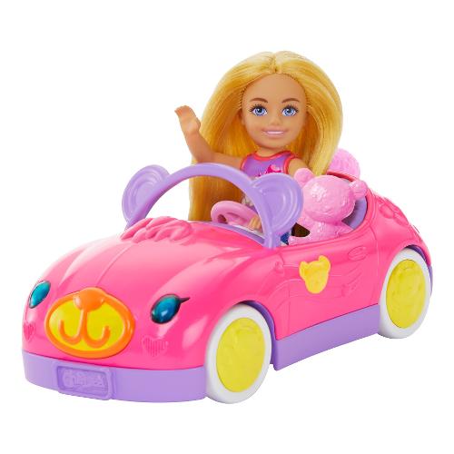 Parti all'avventura con la bambola chelsea e il suo orsacchiotto nella loro adorabile decappottabile! Con ruote funzionanti e un simpatico design a forma di orsacchiotto, questa macchinina giocattolo è perfetta per chelsea, la sorella minore di barbie. Vivi avventure on the road con le due amiche, ovunque le porti la loro immaginazione! La bambola non può reggersi in piedi da sola.