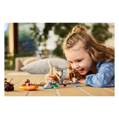 I bambini e gli appassionati di cinema dai 5 anni in su possono ricreare un’emozionante scena del film jurassic world – la rinascita o raccontare le loro storie di dinosauri con questo dettagliato set fuga sul fiume dal t. rex lego® jurassic world(76975). Questo playset regalo per il compleanno facile da costruire contiene un t. rex stampato per bambini, con braccia, gambe, coda, testa e mascella mobili, oltre a 2 minifigure: teresa delgado e xavier dobbs. Ci sono anche un capanno che può essere “distrutto”, un lanciatore di barche, gommone e veicolo atv e molto altro ancora.