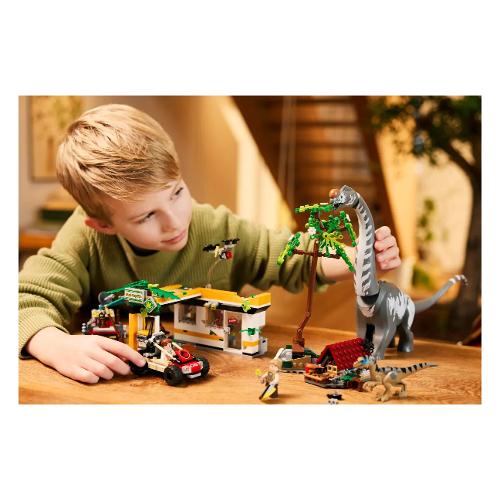 Inseguimenti e azione da brivido attendono i bambini e i fan del film dai 7 anni in su con questo kit di costruzione alla ricerca del raptor e del titanosauro lego® jurassic world (76973). Questo regalo con dinosauri per bambini e bambine contieneun titanosauro e un velociraptor stampati e 3 minifigure: zora bennett, martin krebs e il dr. Henry loomis. Il velociraptor ha una mascella mobile e il titanosauro ha collo, testa e coda mobili. Il playset interattivo include una stazione di ricarica,un fuoristrada con rimorchio, una valigetta con 3 siringhe, una motocicletta, un drone costruibile, un’area di accampamento con funzione di albero che cade e altro ancora.