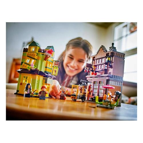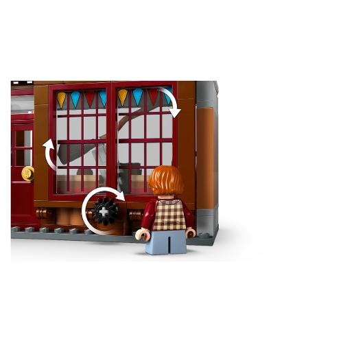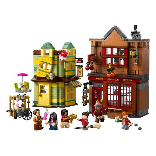 Il negozio accessori di prima qualità per il quidditch e la gelateria fortebraccio possono essere collegati tra loro e ad altri modelli di diagon Alley LEGO Harry Potter (disponibili separatamente) per c reare un’incantevole via dello shopping in mattoncini.