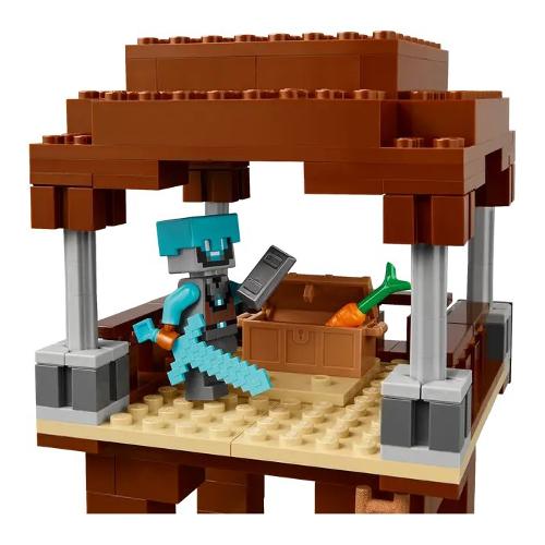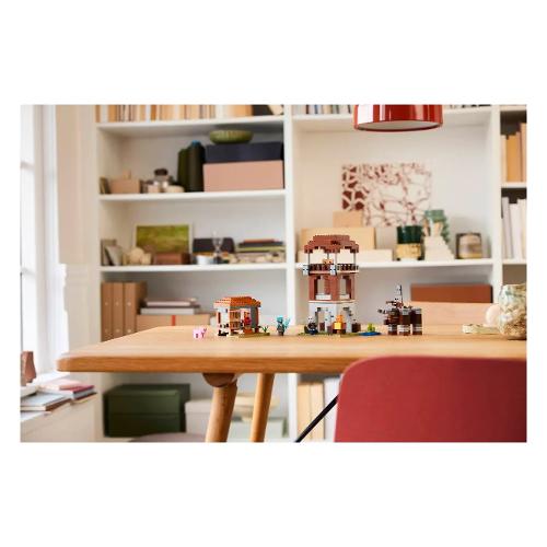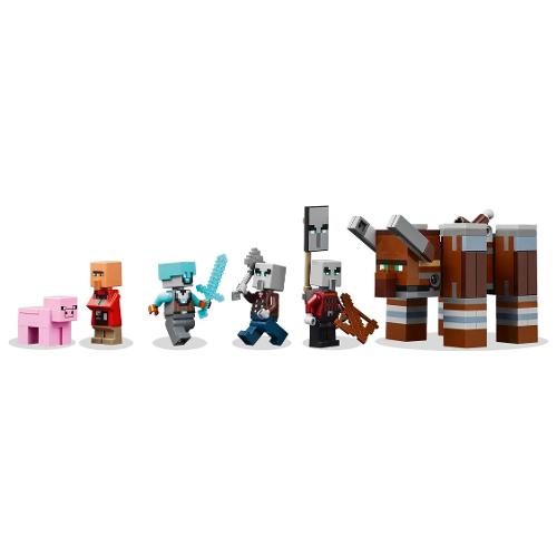 Il set include 4 minifigure lego minecraft: una sentinella dello spazio, un capitano dell’incursione, un abitante muratore e un rivendicatore. Il personaggio del razziatore costruibile è dotato di una funzione azionata da una leva che consente ai bambini di aprire e chiudere la mascella e di sferrare testate. Una torre di guardia include scale per l’accesso tra i tre piani, striscioni che mostrano i volti dei saccheggiatori e uno scrigno pieno di bottino prezioso. La casa del muratore ha una porta apribile e un interno arredato con un letto e uno scalpellino. Ci sono anche un maiale lego minecraft e accessori tra cui un manichino da addestramento, una torcia, una carota, un lingotto di ferro, un elmo di diamante, una spada di diamante, una balestra e un’ascia di ferro. L’app lego builder offre ai bambini il divertimento aggiuntivo di utilizzare il proprio dispositivo per ingrandire e ruotare i modelli in 3d.