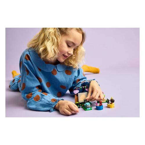 È “luci, macchina, amicizia!” Mentre i bambini raccontano la storia delle amiche paisley e aliya che hanno organizzato unaserata al cinema nel giardino di paisley. Inserisci una diapositiva nel proiettore e premi il mattoncino luminoso per far apparire l’immagine sul grande schermo. Scopri tanti accessori, tra cui una macchina per i popcorn con una leva per far “scoppiare” i popcorn! Gli altri accessori includono una scatola di popcorn, bevande, un fumetto e 2 comode sedie.