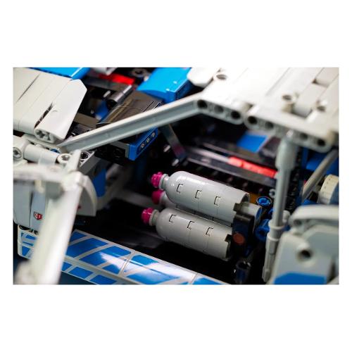 Assembla i realistici dettagli dell’auto, come lo sterzo e le sospensioni anteriori e posteriori. Apri il cofano per esaminare il motore a 6 cilindri con pistoni mobili. Regola l’ala e prova la prima funzione di derapata lego technic in assoluto. Questa funzione solleva l’auto in modo da poter ricreare le straordinarie manovre delle scene di gara. Apri le porte per accedere al sedile del pilota e alle 3 bombole di NOS. Questo set è un pezzo da esposizione di grande effetto e un fantastico regalo per i fan delle auto di Fast & Furious.