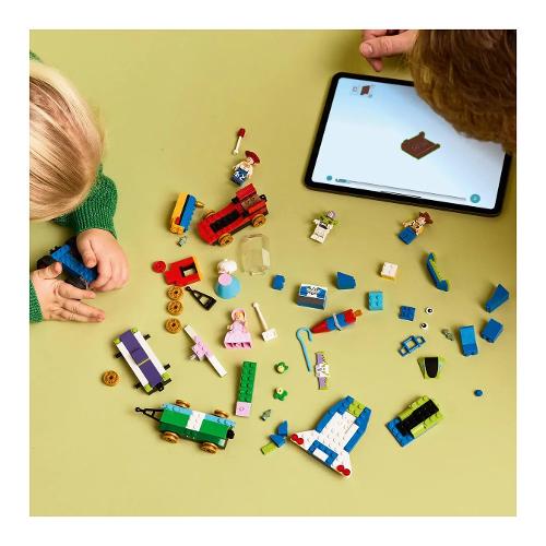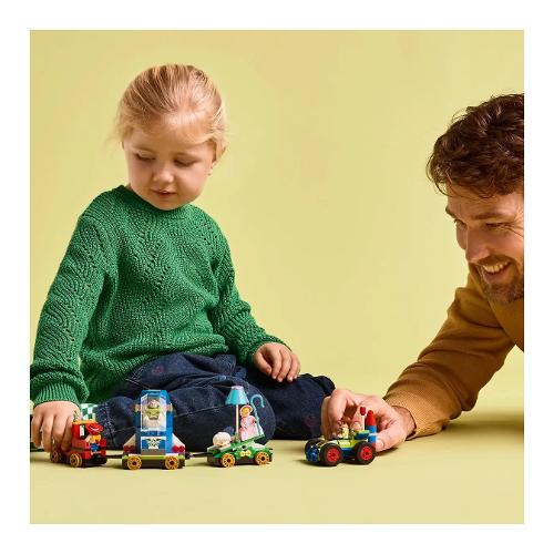 I bambini dai 4 anni in su che amano i veicoli e i treni troveranno tutto questo e molto altro nel set toy story: treno e auto rc celebrativi lego® ǀ disney (43264). I bambini imparano a costruire mentre celebrano il 30° anniversario di toy story disney e pixar con una locomotiva di ispirazione western, 2 carri e un’auto. I carri sono dotati di un’altalena e di un’astronave. Il set costruibile contiene 4 personaggi LEGO ǀ Disney e Pixar: Woody, Jessie, Bo Peep e Buzz Lightyear.