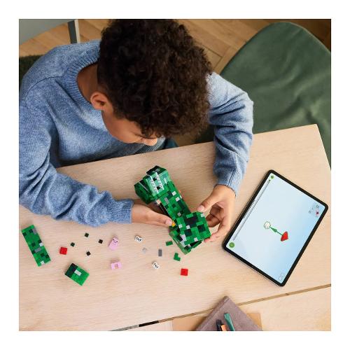 Questa riproduzione giocattolo costruibile dell’iconico creeper di minecraft è alta 21 cm. Ha 4 gambe mobili e una testa snodabile che si muove da un lato all’altro e si inclina su e giù. La parte anteriore della testa del personaggio lego minecraft creeper si stacca per rivelare uno spazio interno contenente un creeper della prima versione e un elemento dinamite. Per un ulteriore divertimento digitale, i costruttori possono utilizzare l’intuitiva app lego builder per ingrandire, ruotare i modelli in 3d e monitorare i loro progressi.