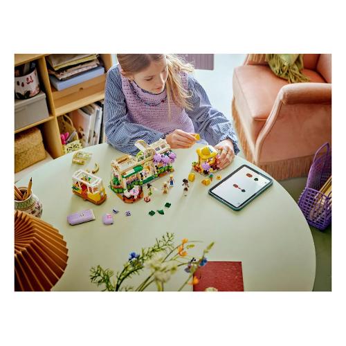 Scopri un’abbondanza di fiori e piante in questo set, che racconta la storia di aliya, olly, nova, esma e nugget il gatto, che amano frequentare il negozio di fiori e la caffetteria. Il set è ricco di funzionalità per ispirare la narrazione creativa. Ci sono un simpatico tram giocattolo su cui i personaggi possono viaggiare e una caffetteria con posti a sedere all’aperto e una cucina con frigorifero, forno e macchina da caffè. C’è anche una bancarella di fiori con mazzi di fiori e piante in vaso in vendita. Dopo aver giocato con il set, i bambini possono esporre il modello su uno scaffale o un tavolo per ammirare i graziosi display di fiori giorno dopo giorno.