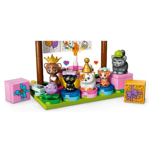 Questo divertente giocattolo racconta la festa di compleanno di churro. Sono presenti anche 4 amici felini di churro, oltre ai personaggi lego friends leo e paisley. Esplora i dettagli divertenti, inclusi regali di compleanno, striscioni e palloncini a forma di gatto. I bambini adoreranno portare gli animali domestici nella casa sull’albero, dove troveranno una pignatta a forma di pesce, un giocattolo per gatti, erba gatta, una fontana e una lettiera.Poi è il momento che i gatti si siedano al tavolo rotante per gustare la torta di compleanno di Churro. Con così tanti modi di giocare con questo set di animali, i bambini possono raccontare ogni volta una storia di amicizia diversa.