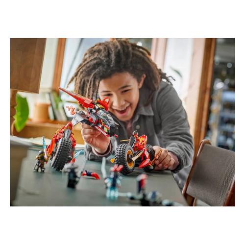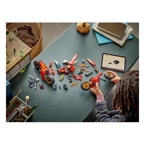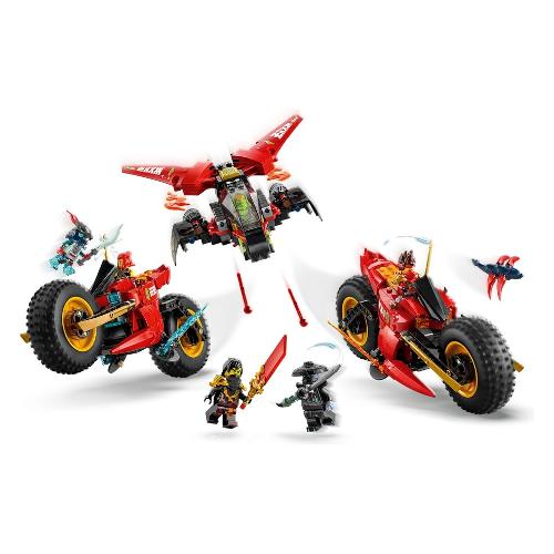 Con il giocattolo d’azione 3 in 1 veicolo da combattimento ninja (71844), i bambini dagli 8 anni in su possono ricreare le scene della terza stagione del programma televisivo ninjago® la rivolta dei draghi. I bambini possono giocare con una grandemoto ninja prima di separarla in 3 veicoli più piccoli: la moto di kai, la moto di wyldfyre e il jet giocattolo di frak con 2 shooter.