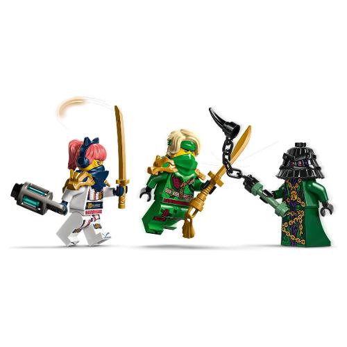 Nel set di gioco lego sono incluse 4 minifigure ninjago: i guerrieri ninja lloyd, sora e wyldfyre, ciascuno con un’arma ninja, più il maestro della sfortuna, zarkt, che consentono ai bambini di inscenare epiche battaglie tra il bene e il male. C’è anche un mini santuario in mattoncini con un messaggio segreto che lloyd rivela con la sua spada rivelatrice traslucida.
