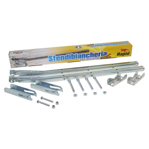 Coppia aste ribaltabili per stendibiancheria a balcone. Il particolare sistema costruttivo permette di poter utilizzare il prodotto in tre posizioni: