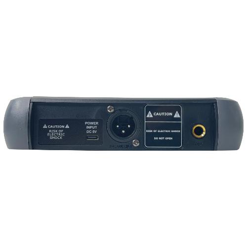 Microfono wireless headset operante in banda UHF. Sia il microfono che la base ricevente sono dotati di display per il controllo della frequenza operativa e del livello di carica della batteria. La base ricevente è alimentata da una normale presa USB (cavo e alimentatore inclusi). Grazie a questa peculiarità può essere collegata a casse amplificate, mixer, power bank, notebook o qualsiasi dispositivo dotato di presa USB. Un'altra caratteristica esclusiva è la possibilità di cambiare la frequenza operativa (16 canali disponibili) direttamente dal microfono, anziché dalla base. Grazie alle pratiche prese XLR e Jack 6,3 mm è possibile ottenere una connessione facile e professionale.