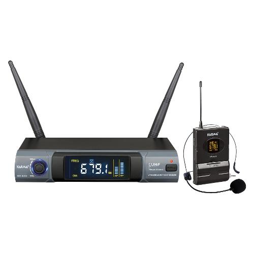 Radiomicrofono compatto ed efficiente comprensivo di bodypack con microfono ad archetto. Dispone di 48 canali per poter operare in ogni condizione. La portata è di circa 50mt con ottima resa acustica sia sul parlato che nel canto. La base ricevente possiede sia una presa di tipo XLR bilanciata sia una presa mixata di tipo 6,3mm. E' alimentabile da una normale presa USB e presenta ampio display che mostra tutte le principali informazioni. Il sistema easy change consente di cambiare canale con la semplice pressione di un tasto del microfono. Il microfono è alimentato da 2 batterie stilo (non incluse).