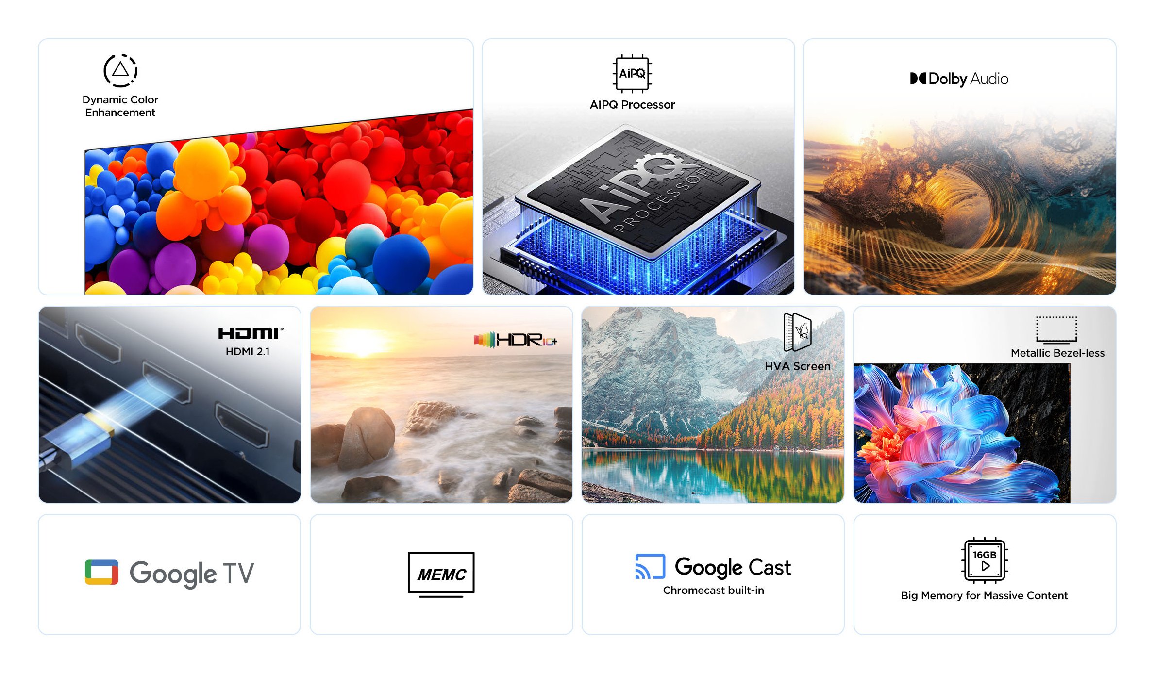 I TV TCL della serie P69K combinano la risoluzione 4K UHD HDR, il processore AiPQ e Motion Clarity per una migliore qualità d'immagine in alta definizione.