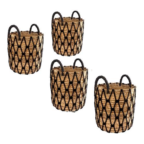 Realizzate interamente a mano utilizzando fibre vegetali, cotone e materiali di recupero, questi set di 4 contenitori diversi per misure trovano il loro habitat in bagno, lavanderia o perché no anche nel vostro living.