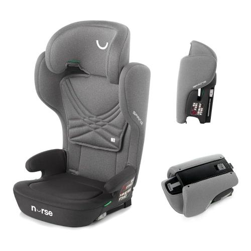 Spring di nurse è il seggiolino auto i-size a chiusura compatta per bambini da 100 a 150 cm di statura; è facile riporre il seggiolino auto spring nel bagagliaio, viaggiare con lui o cambiare auto quando è necessario.