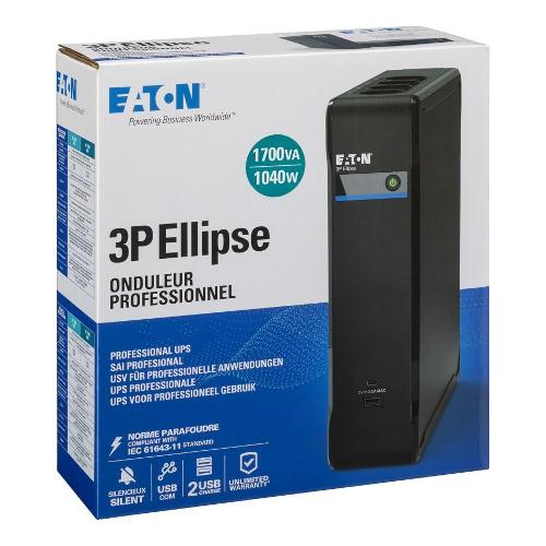 Eaton 3P Ellipse UPS USB DIN, 1700 VA, 1040 W, Input: C14, Outputs: (4) Schuko, (4) Schuko surge only, USB charge, Tower