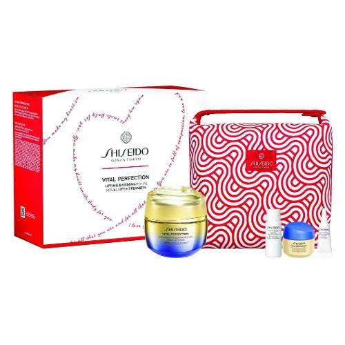 Il set contiene: vital perfection uplifting & firming advanced cream 50 ml una crema anti-età di shiseido, per una pelle dall’aspetto più liftato, rassodato e luminoso. Vital perfection liftdefine radiance serum 7ml un siero concentrato per una pelle più compatta e definita, da utilizzare su viso e collo. Vital perfection overnight firming treatment 15 ml questa crema notte ricca e intensiva rassoda e rivitalizza la pelle durante la notte. Al risveglio, rughe ed elasticità risultano migliorate, l’incarnato più uniforme vital perfection uplifting & firming eye cream 3 ml una crema nutriente che contrasta le cause e i segni dell’affaticamento legati all’età, come rughe, occhiaie e borse sotto gli occhi. La scatola esterna è fatta di carta per sostenere la silvicoltura responsabile (fsc®). Il nostro impegno per la riduzione dell'impatto ambientale ha guidato la creazione di questo pochette. Step 1 vital perfection liftdefine radiance serum applicare ogni mattina e sera dopo la detersione. Step 2 vital perfection uplifting and firming advanced cream vital perfection overnight firming treatment preleva due piccole quantità delle dimensioni di una perla con la punta delle dita e distribuiscile uniformemente su guance, fronte, naso e mento. Vital perfection uplifting and firming eye cream prelevare un'erogazione di prodotto sulla punta delle dita e applicare delicatamente intorno alla zona del contorno occhi, seguendo con un massaggio rilassante.