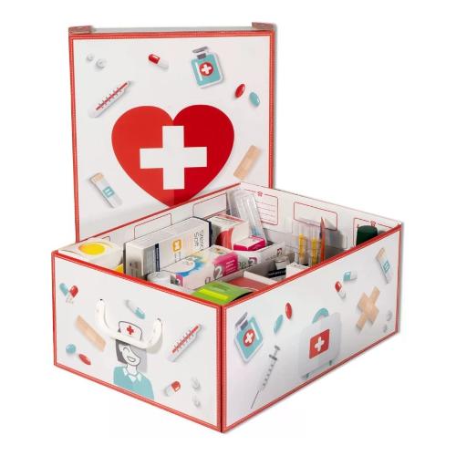 Scatola in robusto cartone rinforzato per organizzare e tenere in ordine tutte le medicine della famiglia in un unico posto. L’ampio spazio interno è modulabile utilizzando 4 separatori sagomati che creano 9 scompartimenti. Etichette prestampate permettono di annotare numeri d’emergenza e organizzare i medicinali. All’interno, ci sono alloggiamenti per le pharma card (4 comprese) per tracciare oltre 20 informazioni mediche. Include una first aid box per il necessario al primo soccorso. Il design nasconde una struttura ad angoli rinforzati, 2 volte più resistenti, e la dimensione permette di collocarla nei mobili da bagno.