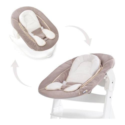 L’Alpha Bouncer 2 in 1 offre due modalità: può essere usato sia come sdraietta sia come modulo per neonati da fissare sul seggiolone in legno Alpha+, permettendo al tuo bebè di trovarsi all’altezza degli occhi e al centro della famiglia.