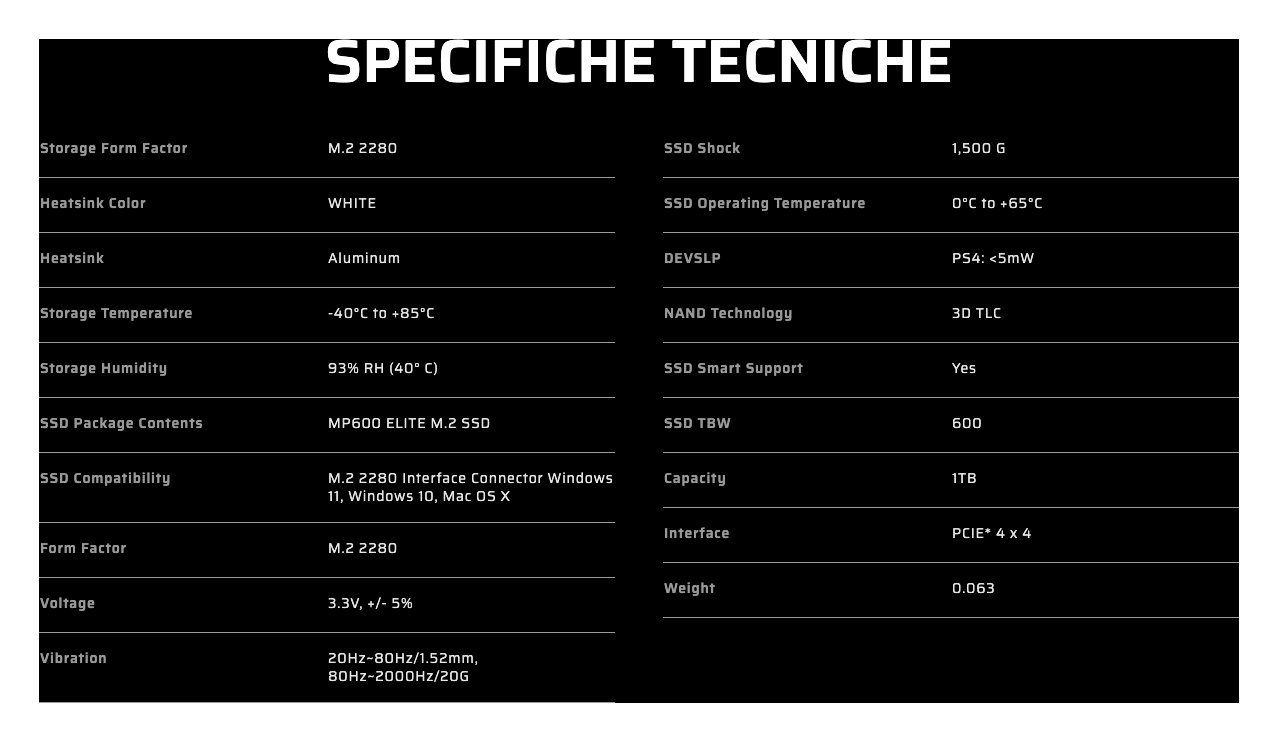 CORSAIR MP600 ELITE PCIe Gen4 x4 NVMe M.2 è un’unità SSD ad alte prestazioni ottimizzata per PS5, che potenzia la capacità di archiviazione della tua console fino a 1TB.