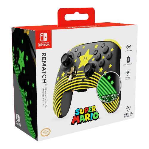 Potenzia le tue sessioni di gioco con il controller wireless Rematch, caratterizzato da un design ispirato alla stella di Super Mario che fa brillare ogni movimento! Oltre alle prestazioni di alto livello, questo controller si distingue per il suo accattivante design fosforescente.