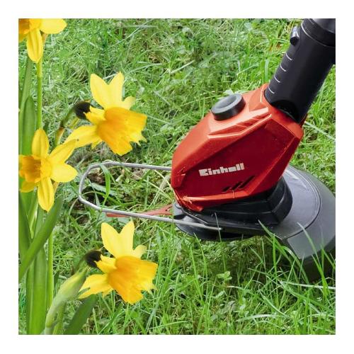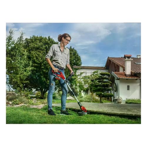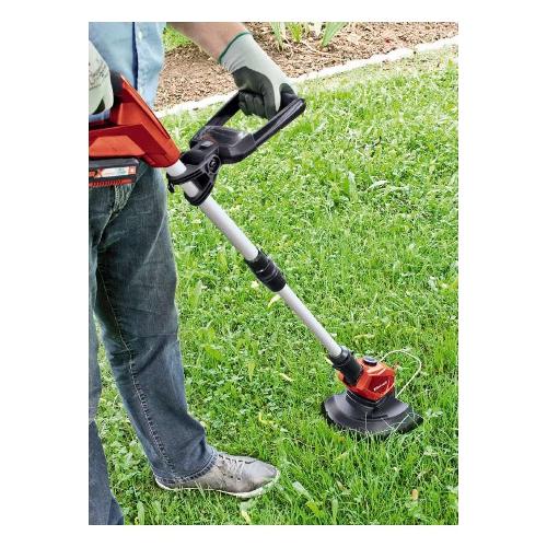 Il tagliabordi a batteria ge-ct 18 li solo è un apparecchio potente che assicura un manto erboso curato anche nei punti in cui questi apparecchi normalmente non arrivano. Con il nuovo sistema di batteria power x-change di einhell, il tagliaerba è dotato di una batteria da 18 v 1,5 ah per interventi di lavoro di lunga durata senza la necessità di corrente elettrica. L'indicatore di carica batteria con tre led permette inoltre di verificare istantaneamente lo stato di carica attuale. L'impugnatura di guida telescopica regolabile in continuo del tagliabordi ge-ct 18 li solo può adattarsi a qualsiasi statura e assicura una presa confortevole. Grazie alla presa antiscivolo (softgrip), all'impugnatura secondaria regolabile in continuo con vano per 20 lame e alla testa motore orientabile in cinque posizioni e girevole di +/- 90°, situazioni di lavoro gravose come superfici verticali o bordi del tappeto erboso possono essere lavorati senza fatica e in modo confortevole. Un caricabatteria è compreso nella dotazione. Inoltre la batteria può essere utilizzata per tutti gli apparecchi della famiglia power x-change. Allo scopo di proteggere i fiori, le piante delicate e altri oggetti sensibili, l'apparecchio è equipaggiato di un distanziatore. La dotazione comprende anche 20 robuste lame in plastica.