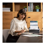 Ovunque tu sia, la scansione è ancora più semplice con l’ADS-1800W, è potente ma compatto e portatile. Compatibile con powerbank esterni, consente di eseguire facilmente la scansione dei documenti quando e dove è più comodo per te. Insieme alla connettività wireless, è possibile connettersi e scansionare facilmente utilizzando il telefono cellulare o il tablet e usufruire di flussi di lavoro fluidi con potenti software di editing PDF e gestione dei documenti.