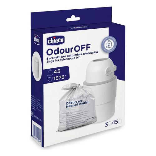 Usati in combinazione con il mangia pannolini telescopico odour off chicco, possono contenere fino a 35 pannolini sporchi l’uno*(considerando pannolini di taglia 5-2) 1 kg).