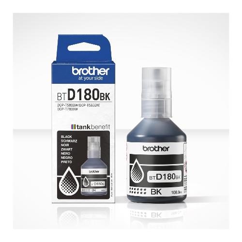 Flacone di inchiostro nero Brother BTD180BK ad altissima capacità. Compatibile con DCP-T580DW, DCP-T583DW, DCP-T780DW