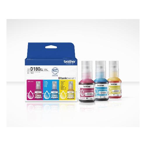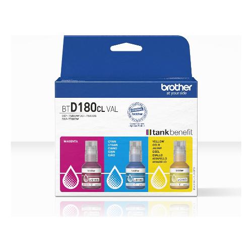 Confezione multipla Brother BTD180CLVAL con flaconi di inchiostro a colori ad alte prestazioni. Compatibili con DCP-T580DW, DCP-T583DW, DCP-T780DW