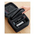 La custodia può contenere e trasportare tutto il necessario per utilizzare la console in modalità TV, tra cui una console Nintendo Switch 2, una base per Nintendo Switch 2, due controller Joy-Con 2, diversi cavi e fino a sei schede di gioco.