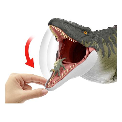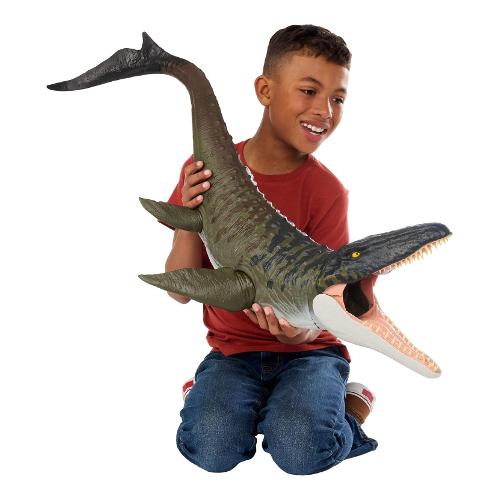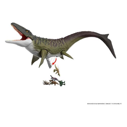 Porta a casa l'emozione e il brivido di Jurassic World Reborn con questo enorme Mosasaurus da 91 cm. Divertimento carnivoro! Le articolazioni regolabili sono pronte per la battaglia e la mascella si apre a 35 gradi per "divorare" le minifigure di dinosauri. (Mini-dinosauri venduti separatamente) Ripeti il divertimento! Apri la pancia per liberare la preda e ricominciare. Look predatorio! Il Mosasaurus presenta un design a tema Jurassic World Reborn, con pinne e coda impressionanti. È un'ottima aggiunta a qualsiasi esposizione di Jurassic World! Una presenza imponente!
