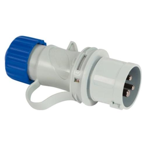 Spina elettrica 2P+T 16A CEE IP44 per cavo assiale Blu e Bianco 70100