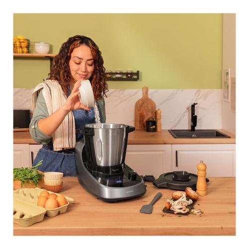 Robot da cucina multifunzione mambo touch. Include 37 funzioni, schermo touch TFT da 5" con ricettario integrato, APP, bilancia e caraffa in acciaio inox. È dotato di 10 velocità e timer regolabile a partire da 1 secondo fino a 12 ore. La temperatura è regolabile grado per grado da 37 ºC a 120 ºC.